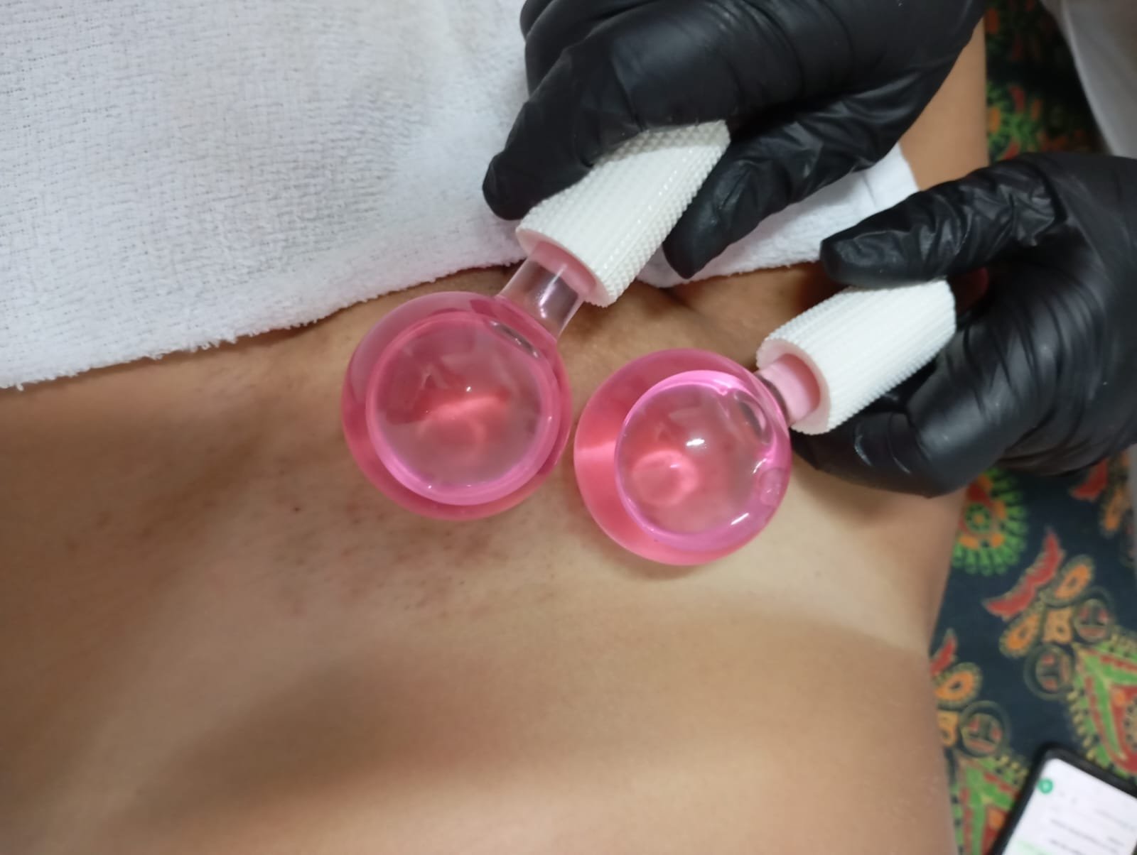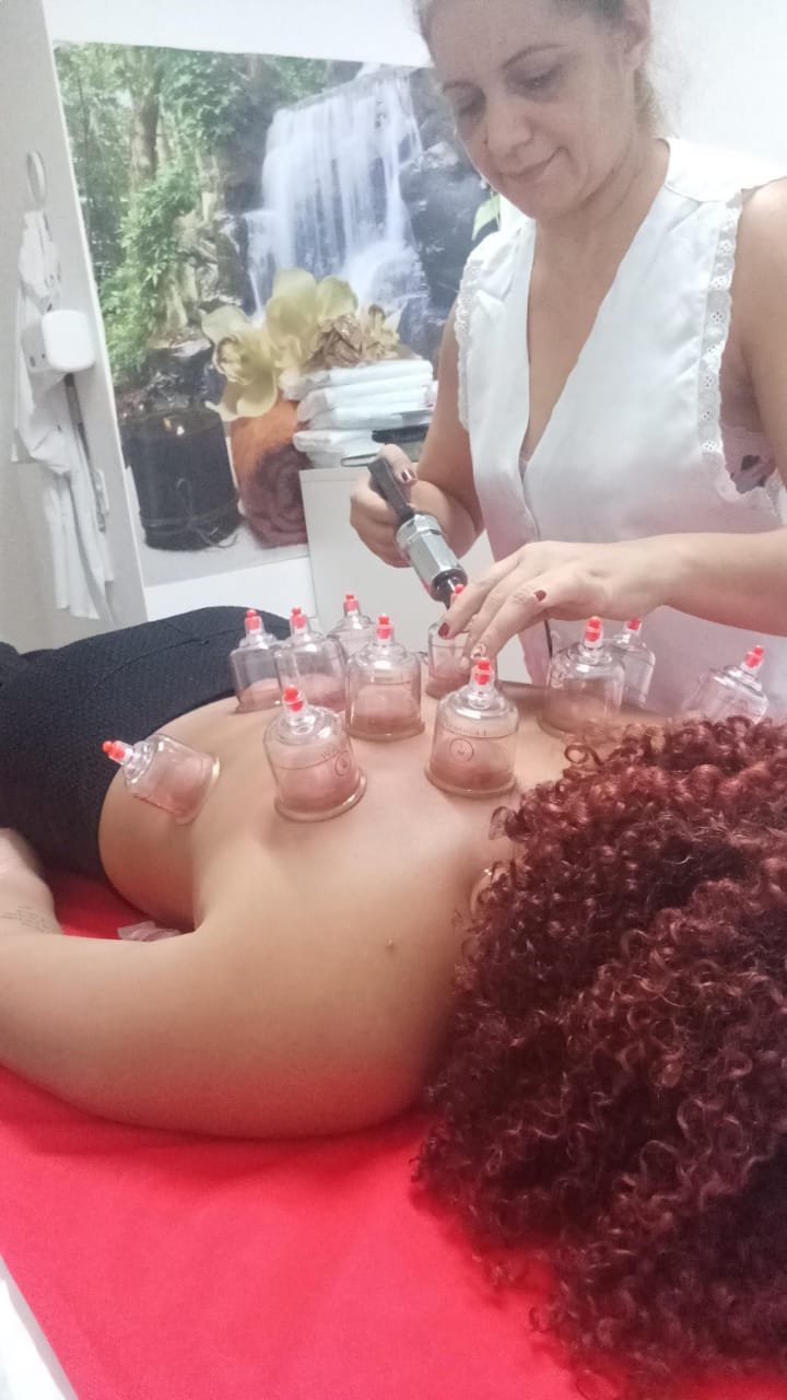 Uso de copos para sucção da pele e músculos. Oxigena os tecidos, solta nódulos de tensão e trata dores de forma profunda.